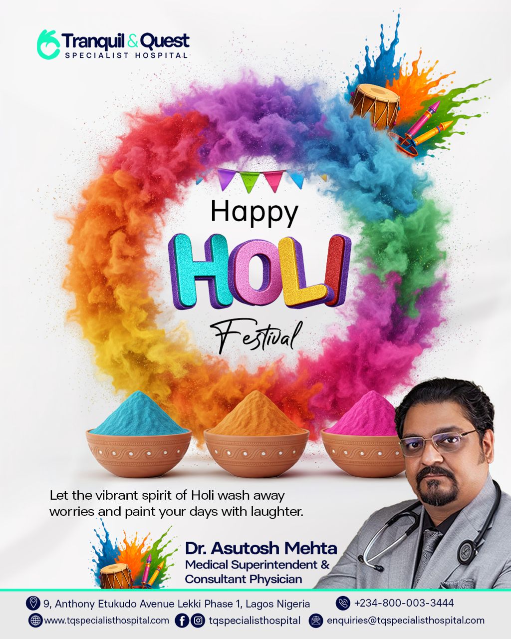 At Tranquil and Quest Specialist Hospital (TQSH), we join in celebrating this colorful festival and extend warm wishes to everyone observing Holi.